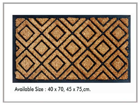 These types of mats are economic, durable and very eco-friendly Woven coir mattings are combined with rubber moldings. They are available with or without printed in standard weave patterns like Boucle, Herring Bone and Panama.