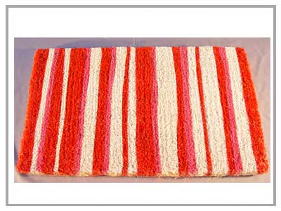These mats are available in Vycome Creel (VC) and Beach Creel (BC) varieties. They are also printed with Azo-free water based coir dyes and pigments. BC-I & BC-2 are the most popular qualities. Available in standard or special sizes as per requirement. BC-1 is the cheapest bio-degradable door mat now available in the market. Weight :- 5.900Kg / Sq. Mtr. Pile height :- 22MM